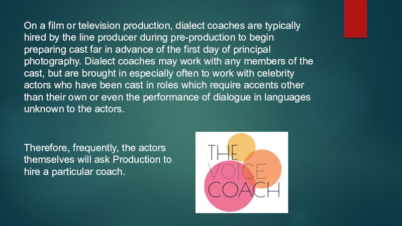 Therefore, frequently, the actors themselves will ask Production to hire a particular coach.
