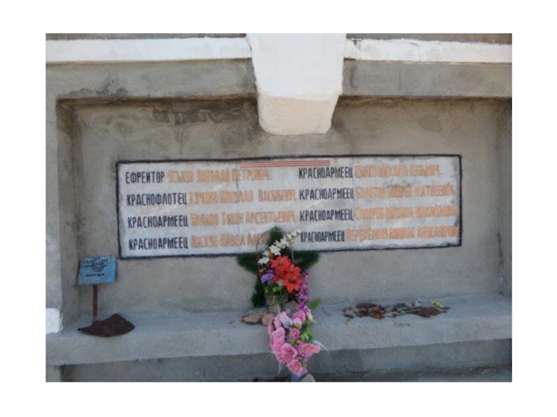 В 1944 году на месте братской могилы был воздвигнут памятник — монумент, сооруженный из инкерманского камня. На его гранях укреплены мемориальные доски с именами погибших героев, воинов советской армии.