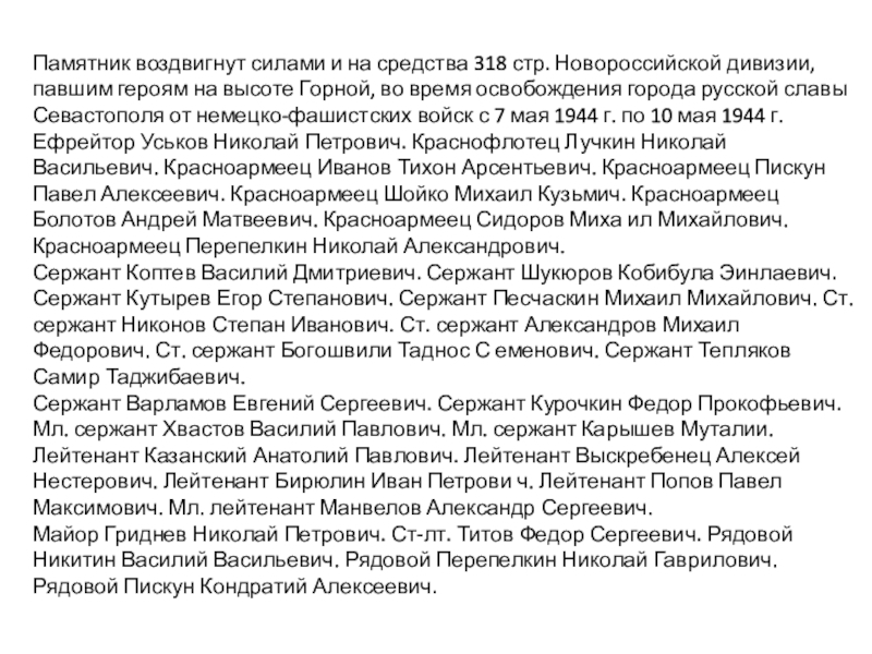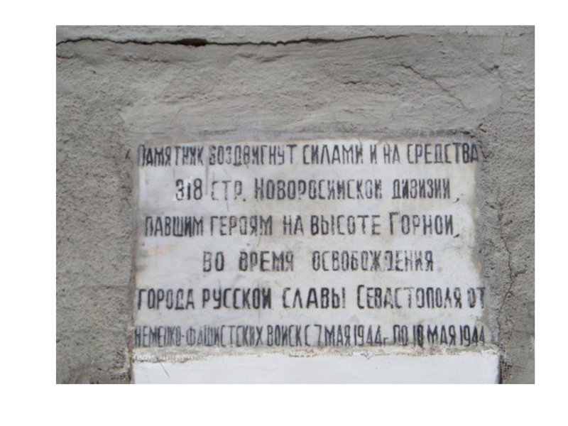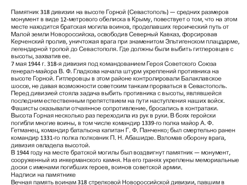 Слайд 10Памятник 318 дивизии на высоте Горной (Севастополь) — средних размеров монумент в