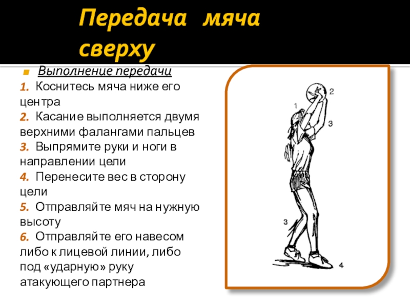 Слайд 6Передача мяча сверху