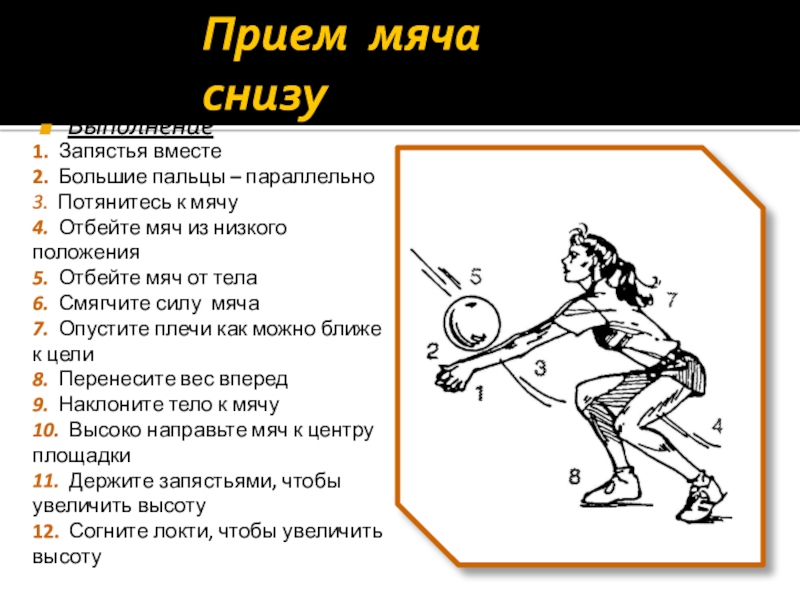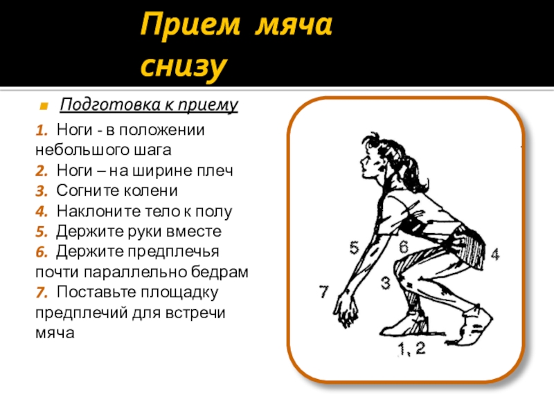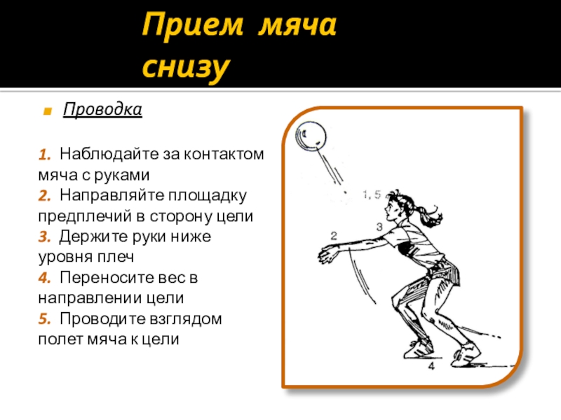 Слайд 10Прием мяча снизу