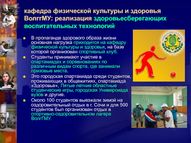 Слайд 47кафедра физической культуры и здоровья ВолггМУ: реализация здоровьесберегающих воспитательных технологий