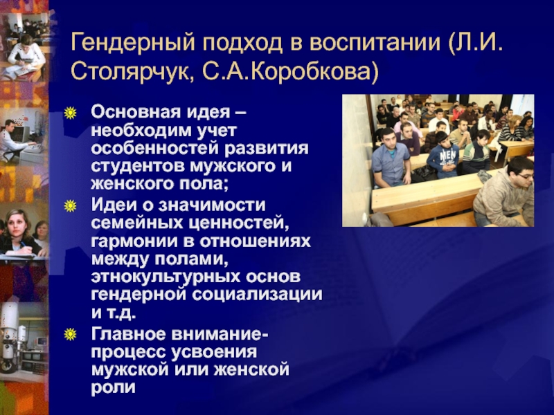 Слайд 11Гендерный подход в воспитании (Л.И.Столярчук, С.А.Коробкова)