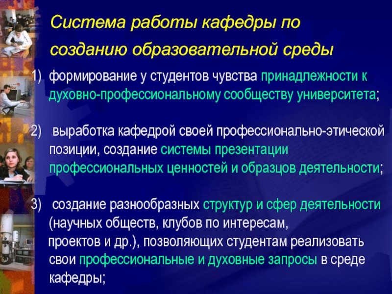 Создание условий жизнедеятельности студентов, адекватных требованиям образовательного процесса