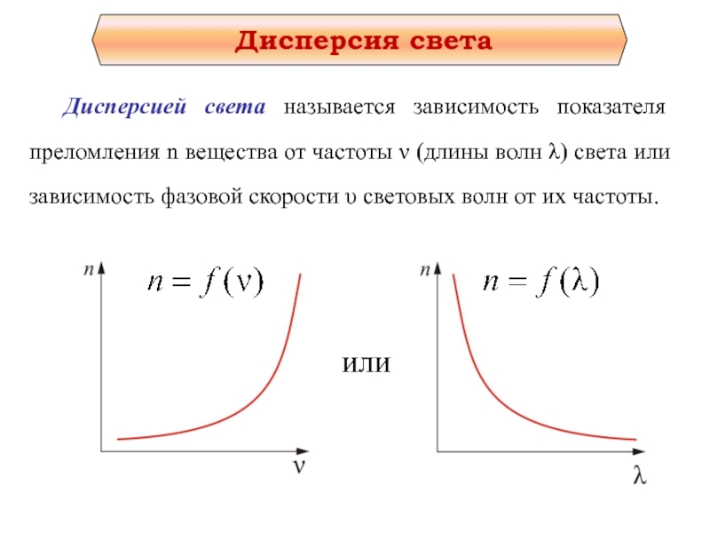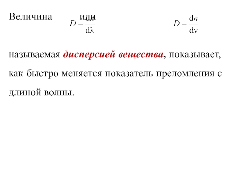 Слайд 20Дисперсией света называется зависимость показателя преломления n вещества от частоты