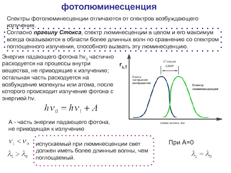 испускаемый при люминесценции свет должен иметь более длинные волны, чем поглощаемый.