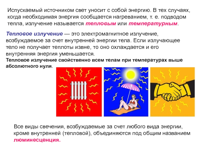 Этот вид свечения называется люминесцентным излучением, или люминесценцией. Оно имеет следующие особенности: