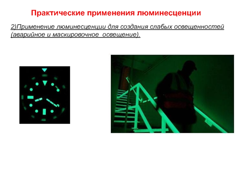 2)Применение люминесценции для создания слабых освещенностей (аварийное