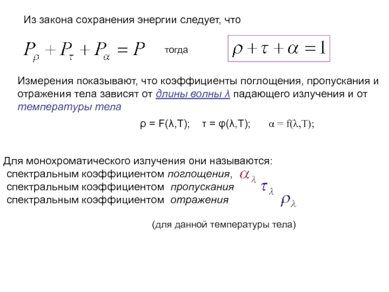 зная спектральную и интегральную плотность излучения абсолютно черного тела, можно вычислить их для любого нечерного тела, если известен коэффициент поглощения последнего, который определяют экспериментально.