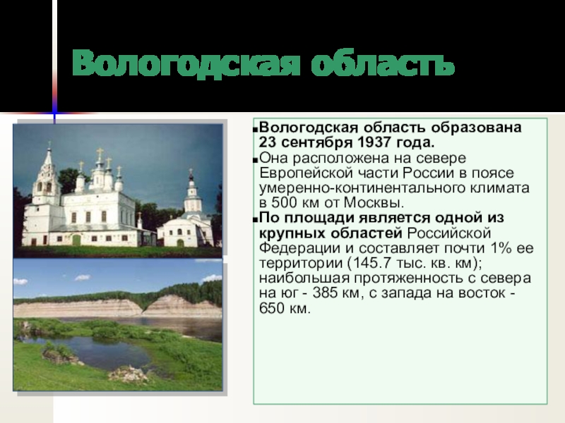 По площади является одной из крупных областей Российской Федерации и составляет почти 1% ее территории (145.7 тыс. кв. км); наибольшая протяженность с севера на юг - 385 км, с запада на восток - 650 км.