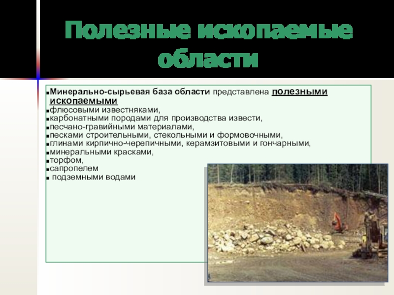 Минерально-сырьевая база области представлена полезными ископаемыми
