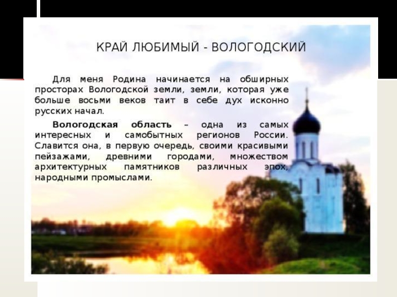 Современный Устюг красив и величествен. На высоком берегу Сухоны расположились белокаменные храмы XVI—XVIII вв., сверкают в небе позолоченные кресты и купола многочисленных церквей.