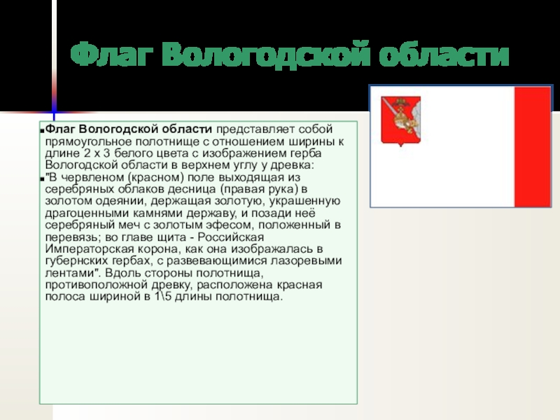 Флаг Вологодской области представляет собой прямоугольное полотнище с