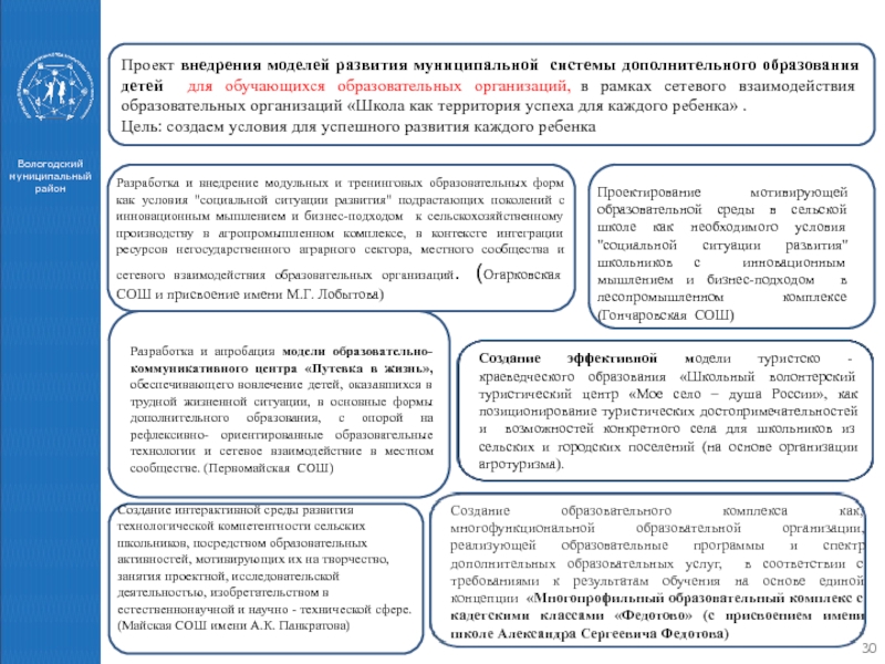 Разработка и внедрение модульных и тренинговых образовательных форм как условия "социальной ситуации развития" подрастающих поколений с инновационным мышлением и бизнес-подходом к сельскохозяйственному производству в агропромышленном комплексе, в контексте интеграции ресурсов негосударственного аграрного сектора, местного сообщества и сетевого взаимодействия образовательных организаций. (Огарковская СОШ и присвоение имени М.Г. Лобытова)