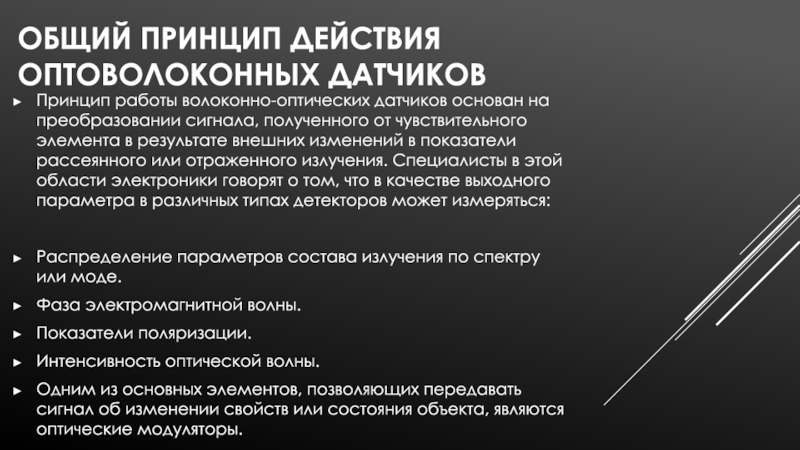 Слайд 6Общий принцип действия оптоволоконных датчиков