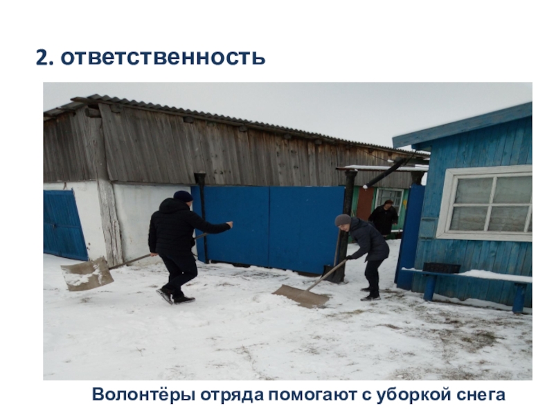 2. ответственностьВолонтёры отряда помогают с уборкой снега