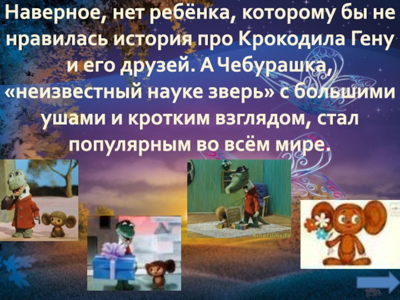 Гену и его друзей. А Чебурашка, «неизвестный науке зверь» с