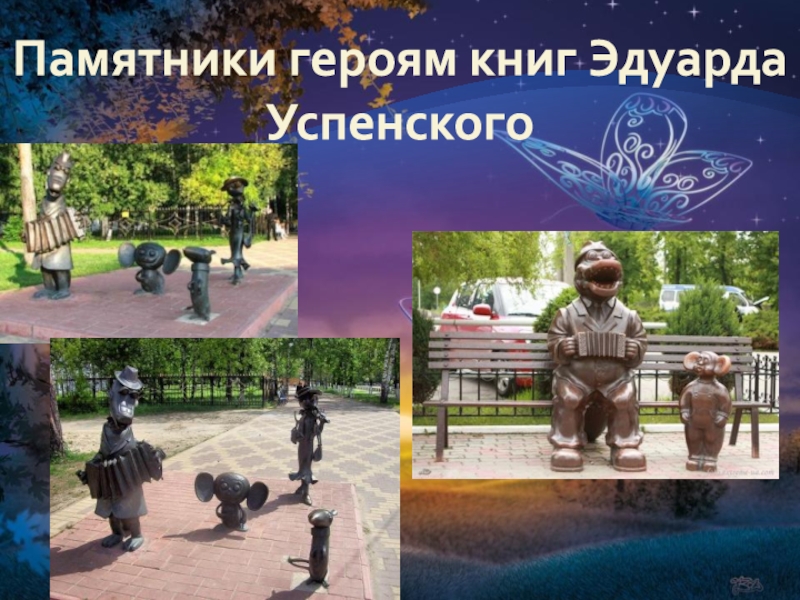 Слайд 12Памятники героям книг Эдуарда Успенского