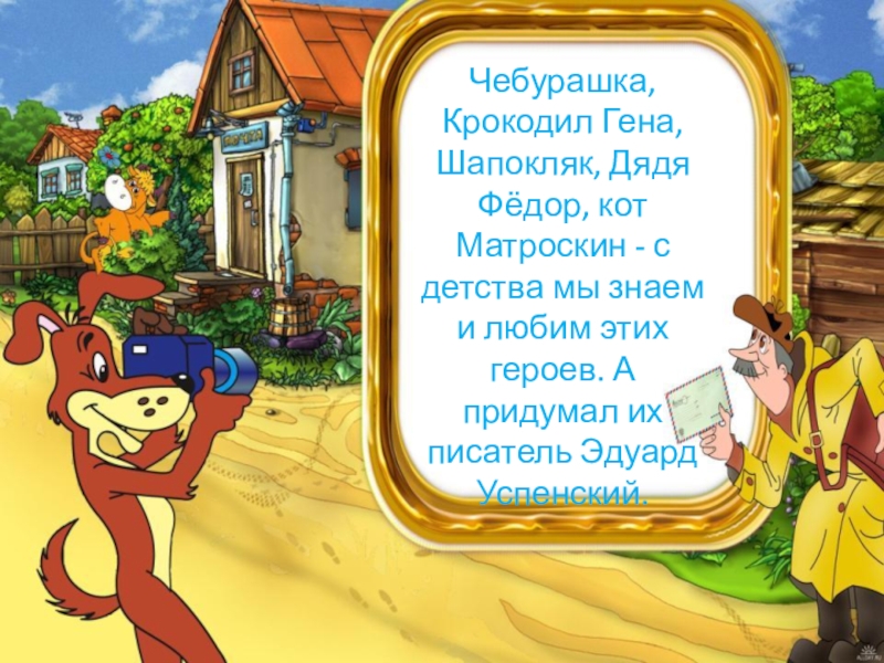 Слайд 5Чебурашка, Крокодил Гена, Шапокляк, Дядя Фёдор, кот Матроскин - с