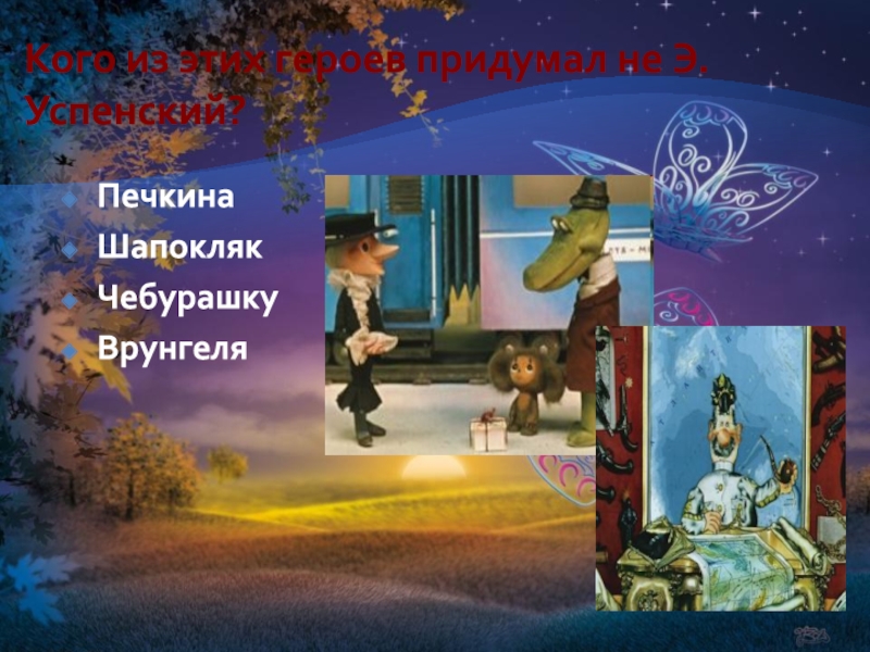 Слайд 28Кого из этих героев придумал не Э.Успенский?