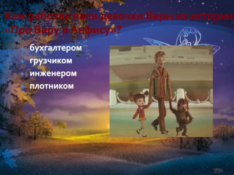 Слайд 26Кем работал папа девочки Веры из истории «Про Веру и