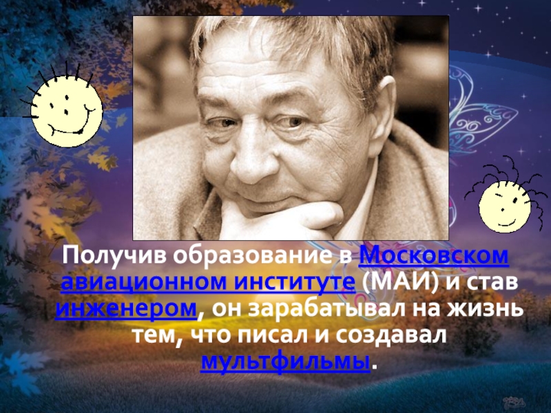 Слайд 17Эдуард Успенский является создателем таких передач, как Спокойной ночи, малыши!,