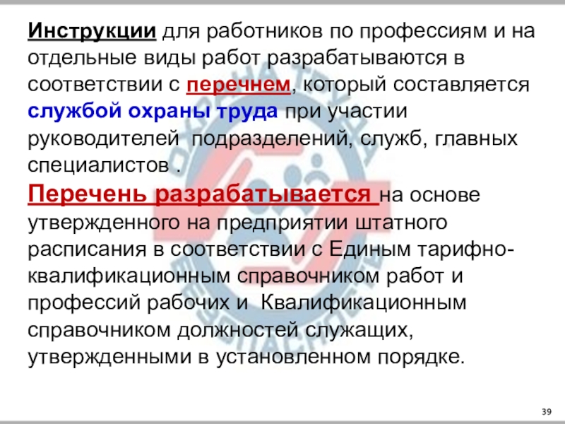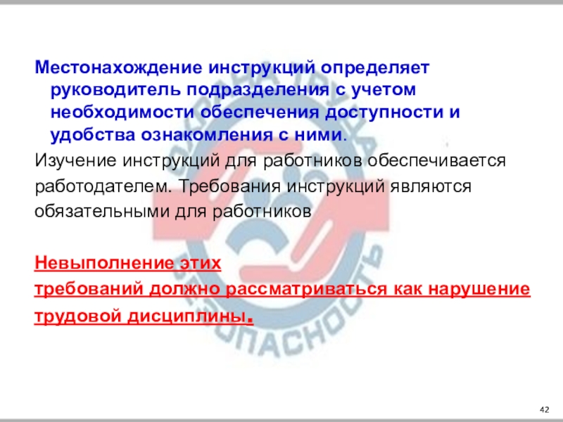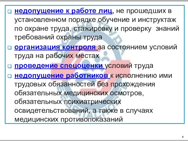 Слайд 4недопущение к работе лиц, не прошедших в установленном порядке обучение
