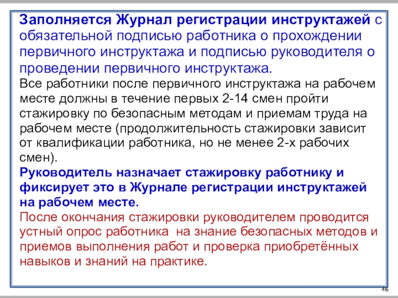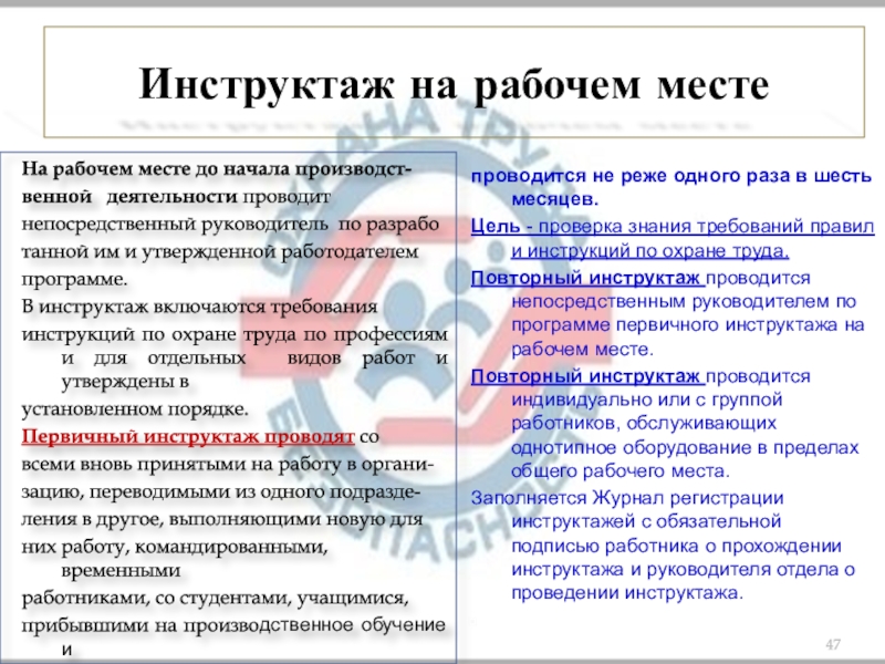 Слайд 54Первичный инструктаж проводит непосредственно на рабочем мес-