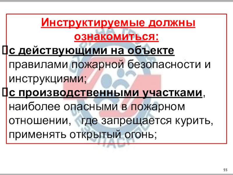 Слайд 51ИНСТРУКТАЖ ПО ПОЖАРНОЙ БЕЗОПАСНОСТИ