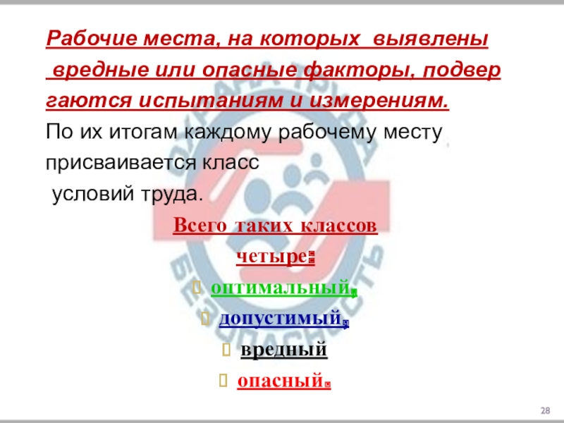соответствующие требованиям охраны труда условия труда на каждом рабочем месте