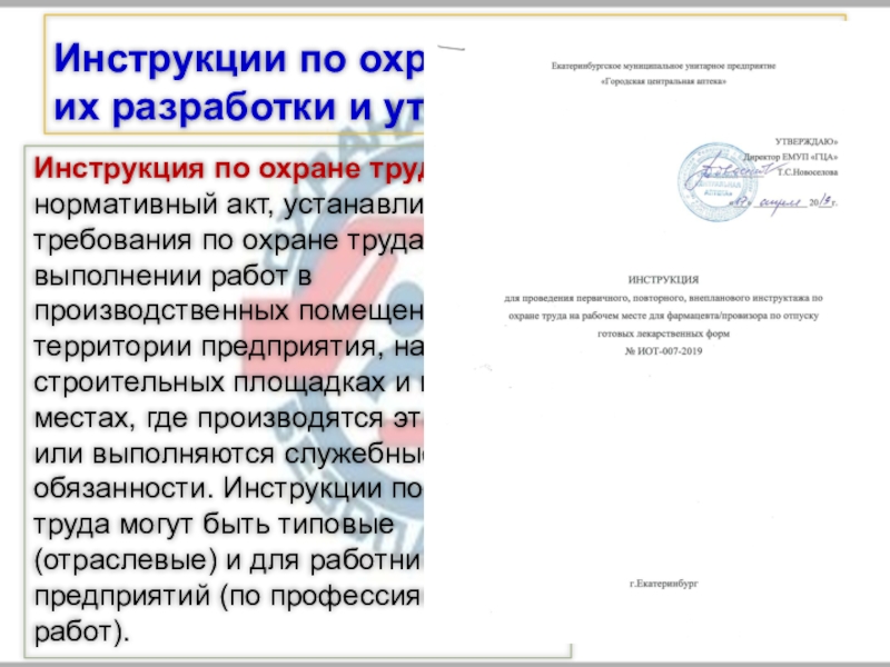 инструкций по охране труда по профессиям и для отдельных видов работ и утверждены в