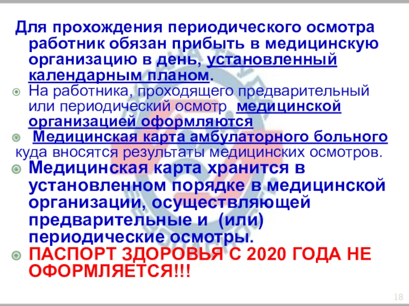 ных и периодических медицинских осмотров работников, занятых на тяжёлых работах и работах с вредными и (или) опасными условиями труда».