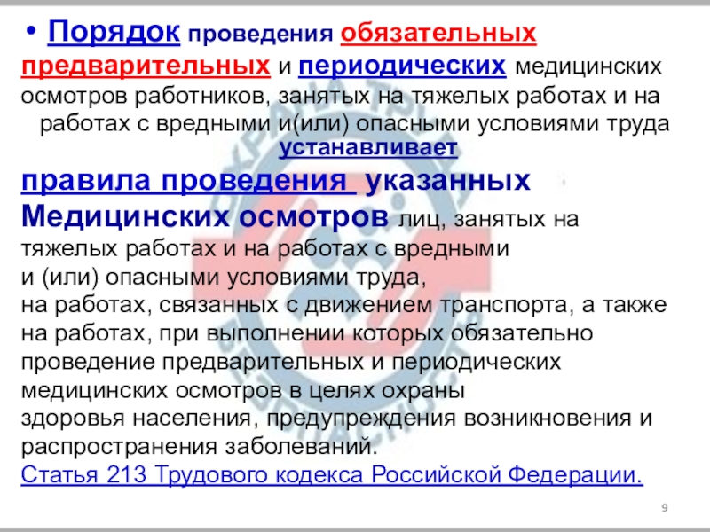 ПОРЯДОК ПРОВЕДЕНИЯ ПРЕДВАРИТЕЛЬНЫХ И ПЕРИОДИЧЕСКИХ ОСМОТРОВ