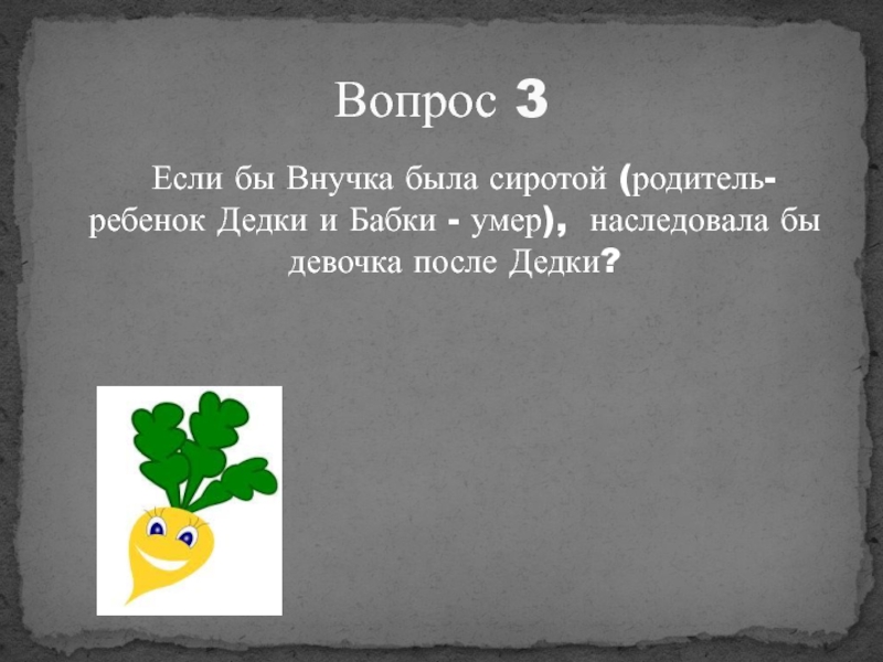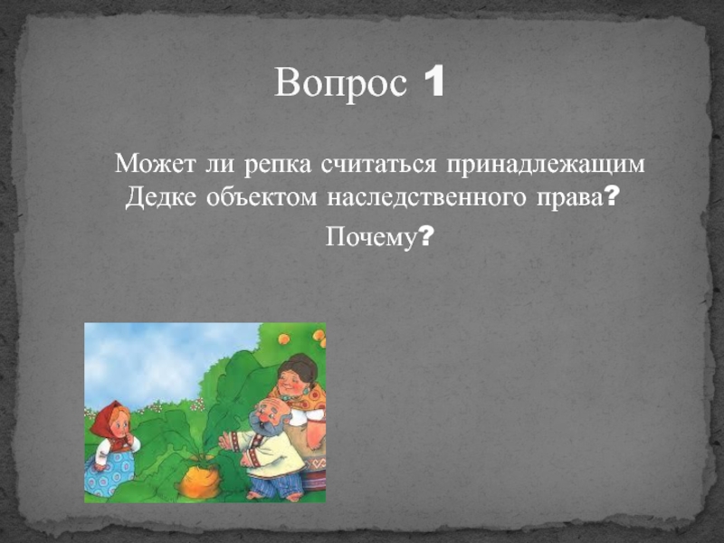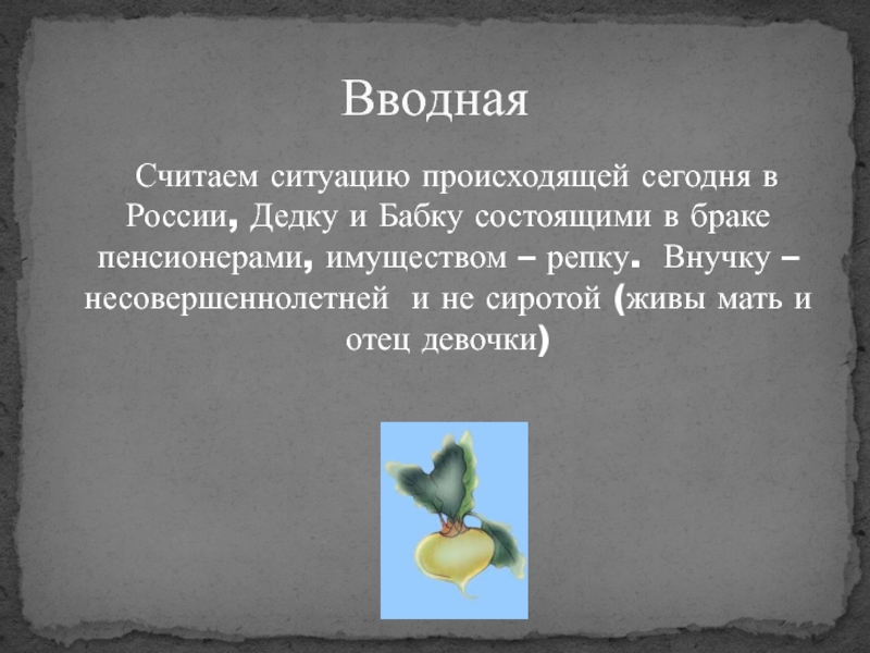 в браке пенсионерами, имуществом – репку. Внучку – несовершеннолетней и