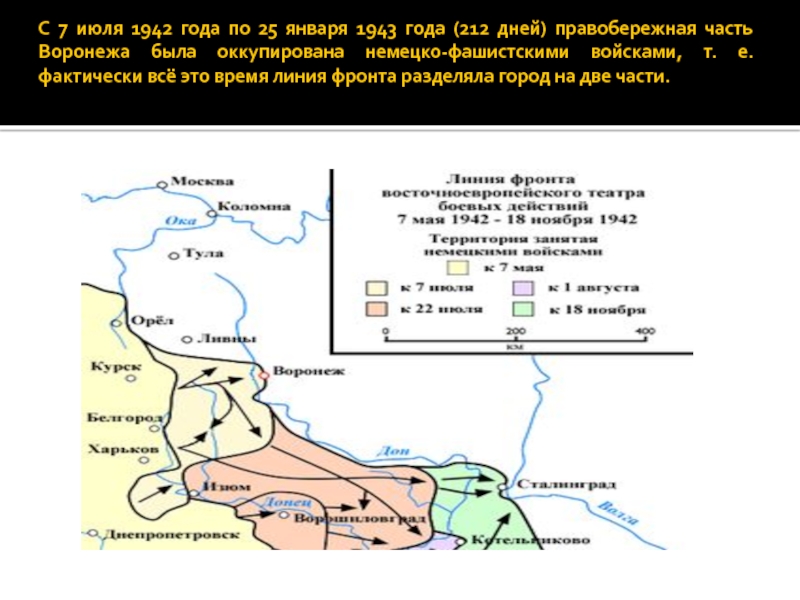 (212 дней) правобережная часть Воронежа была оккупирована немецко-фашистскими войсками, т.