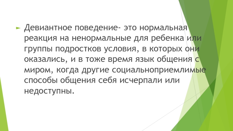 Слайд 12Девиантное поведение- это нормальная реакция на ненормальные для ребенка или