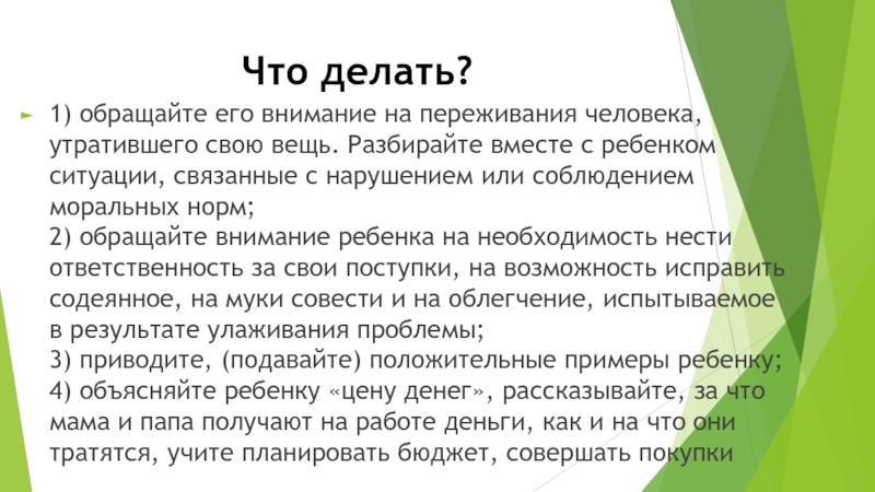 1) обращайте его внимание на переживания человека, утратившего свою вещь.
