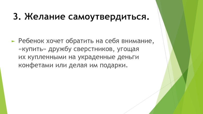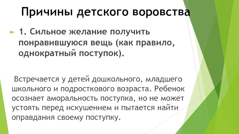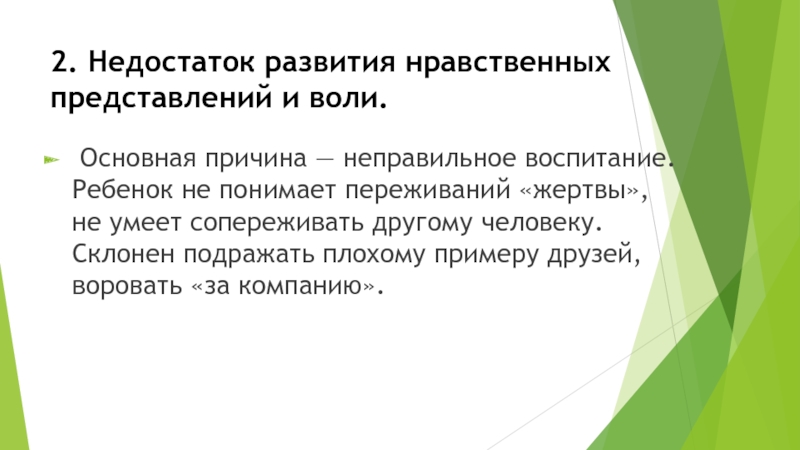 Слайд 52. Недостаток развития нравственных представлений и воли.