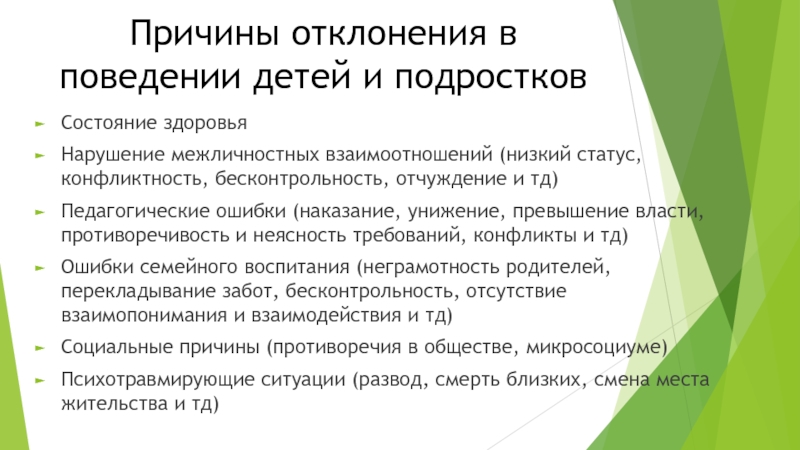 (низкий статус, конфликтность, бесконтрольность, отчуждение и тд)