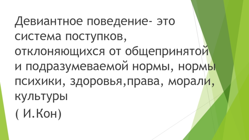 Слайд 2Девиантное поведение- это система поступков, отклоняющихся от общепринятой и подразумеваемой