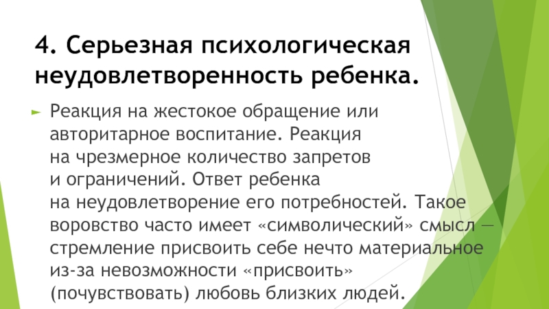 Слайд 74. Серьезная психологическая неудовлетворенность ребенка.