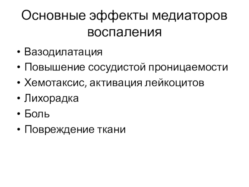 Слайд 9Основные эффекты медиаторов воспаления
