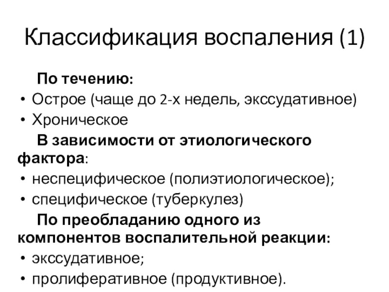 Слайд 15Классификация воспаления (1)