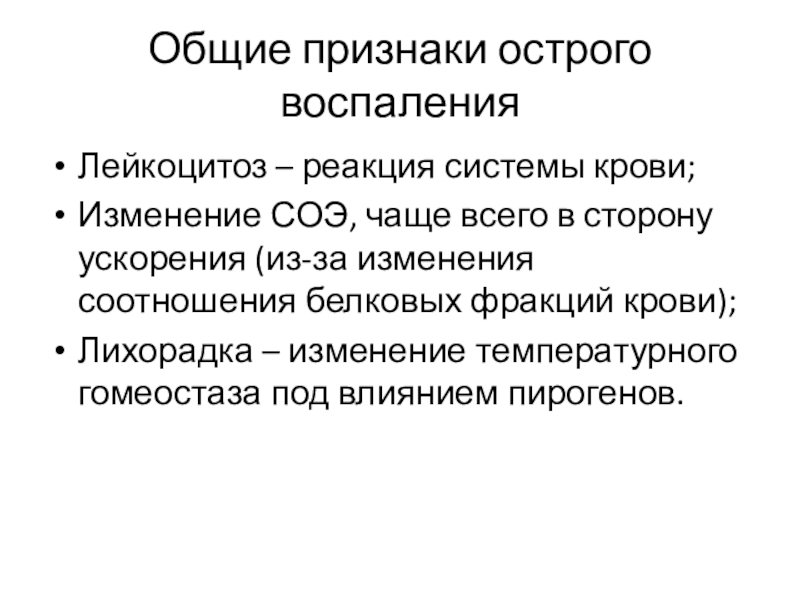 Слайд 27Общие признаки острого воспаления