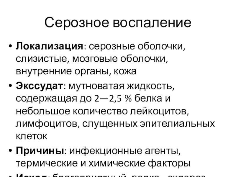 Слайд 17Серозное воспаление