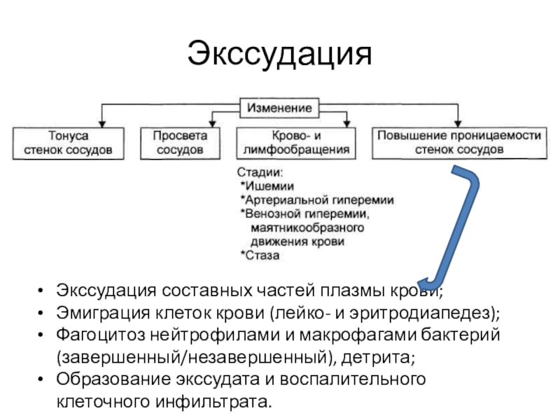 Экссудация составных частей плазмы крови;