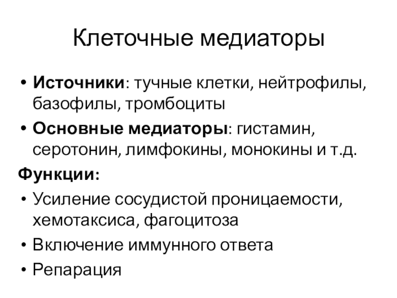 Слайд 7Клеточные медиаторы