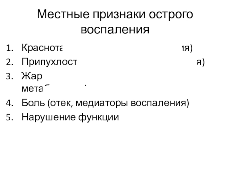 Слайд 26Местные признаки острого воспаления