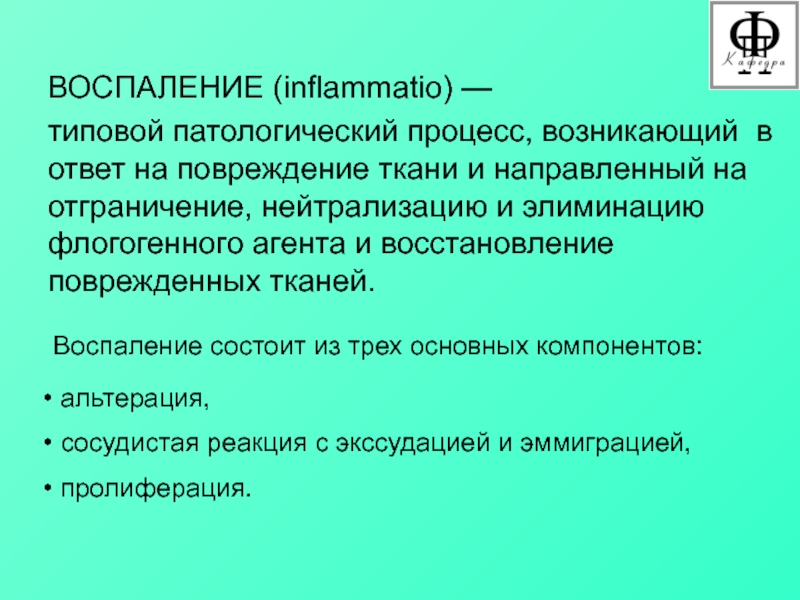 ткани и направленный на отграничение, нейтрализацию и элиминацию флогогенного агента