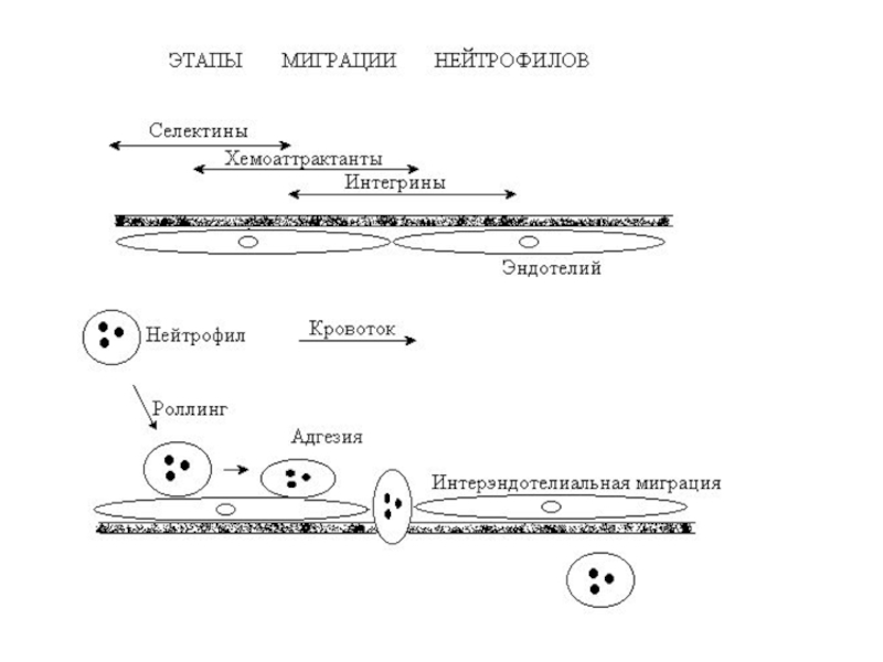 I стадия — обратимая адгезия, скольжение лейкоцитов